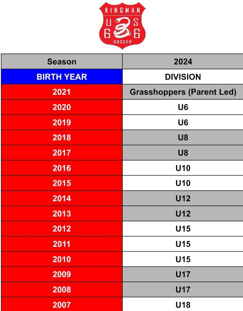 Kingman SC opens registration in the early summer. Check back in the spring for registration dates. Games start in September, after Labor Day weekend. Games end by the first weekend in November. Click on the registration link to the left to register as a player or sign up to coach. You can also sign up to sponsor a team at checkout.